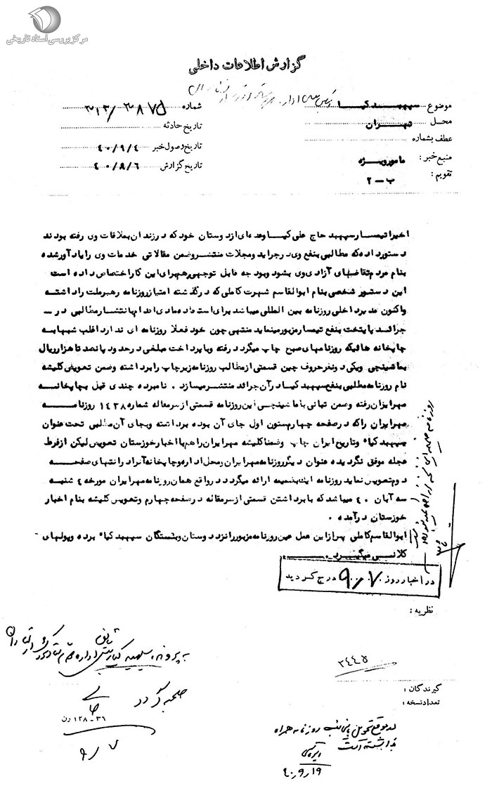 [230]. گزارش مورخه 12 / 4 / 30، همان.