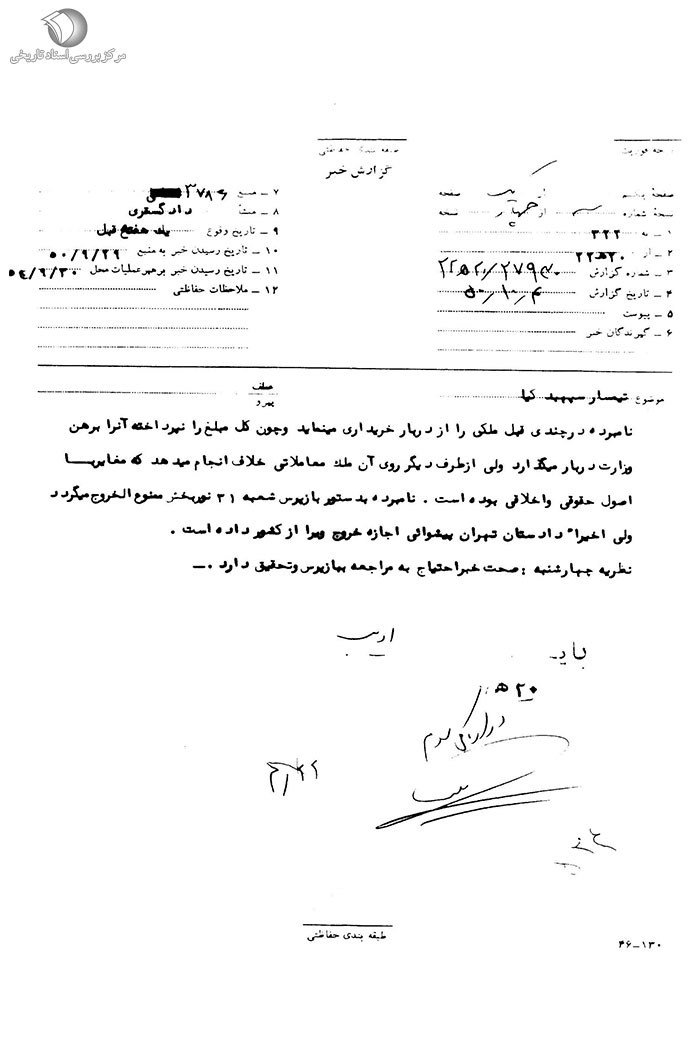 [190]. سند شماره: 33959 / 20 ﻫ 2 - 7 / 11 / 46، همان.