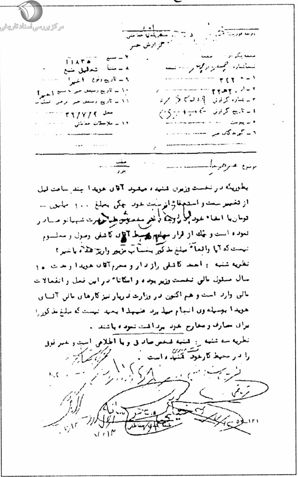 به طورى که در نخست وزیرى شنیده مىشود، آقاى هویدا چند ساعت قبل از تغییر سمت و استعفا از سمت خود، چکى به مبلغ 100 میلیون تومان با امضاى خود در وجه دفتر مخصوص علیا حضرت شهبانو صادر نموده است و چک از قرار مسلم توسط آقاى کاشفى وصول و معلوم نیست که آیا واقعاً مبلغ مذکور به حساب مزبور واریز شده یا خیر؟