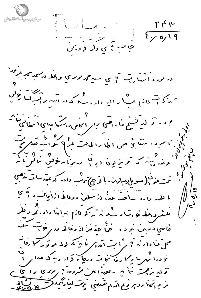 [شماره:] 243 [تاریخ:] 19 / 5 / 1340