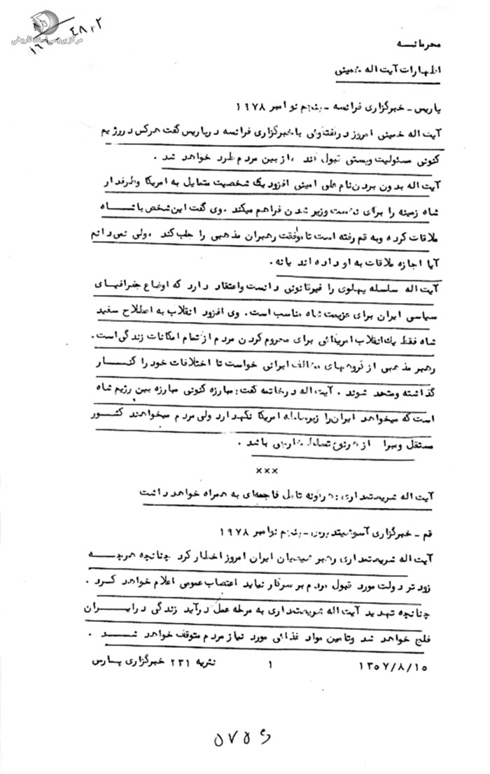 پاریس ـ خبرگزاری فرانسه ـ پنجم نوامبر 1978[14 / 8 / 1357]