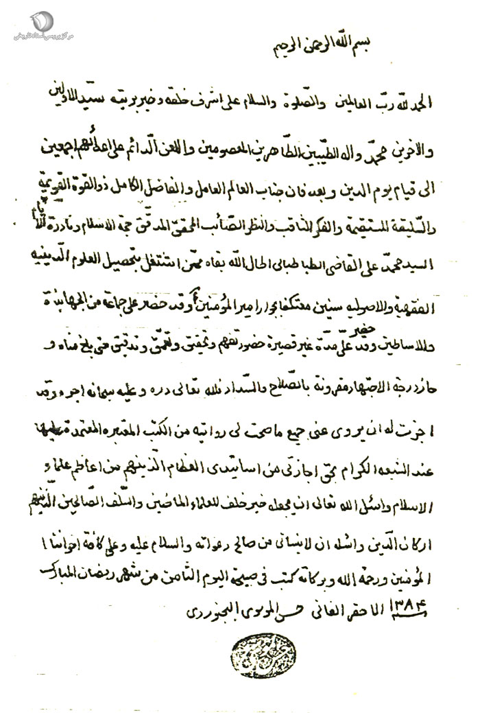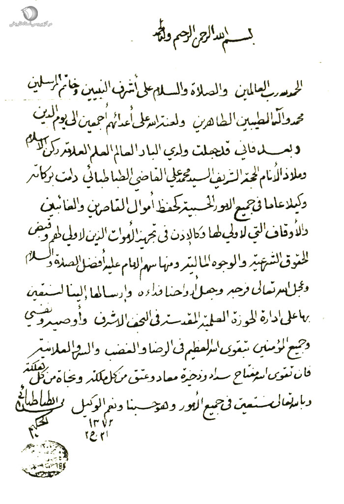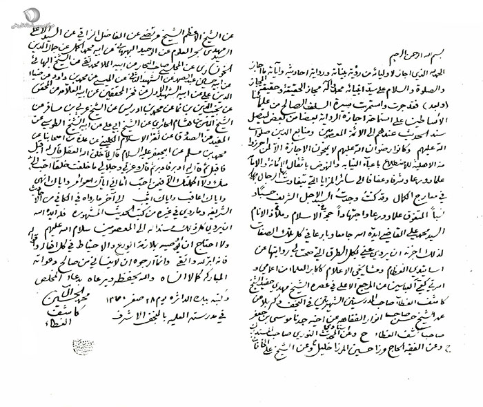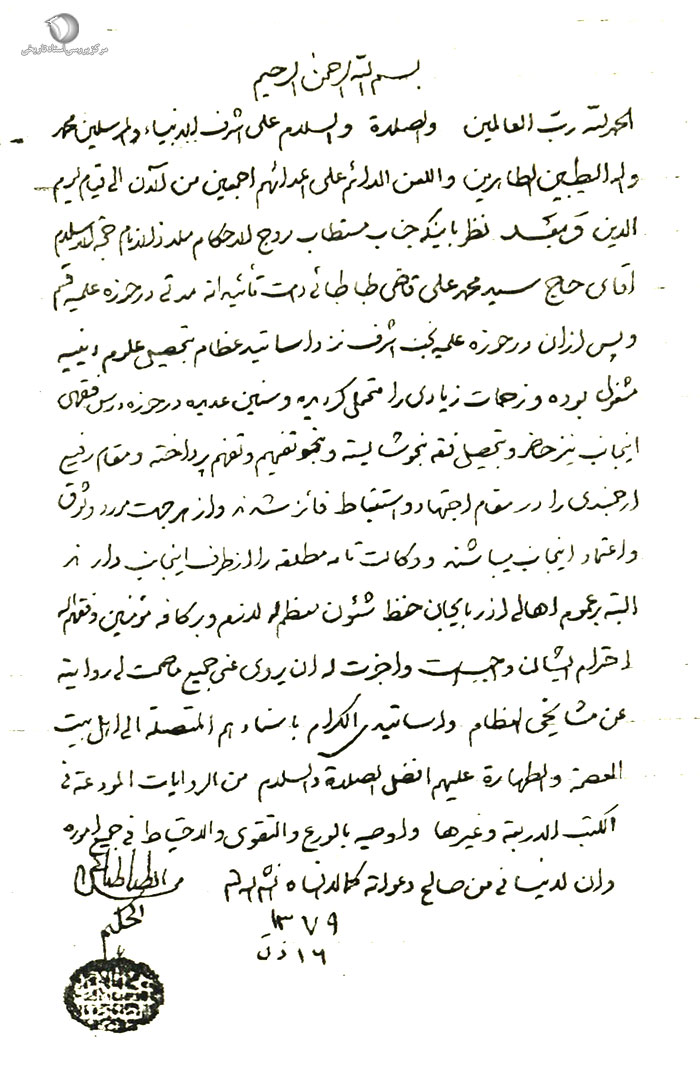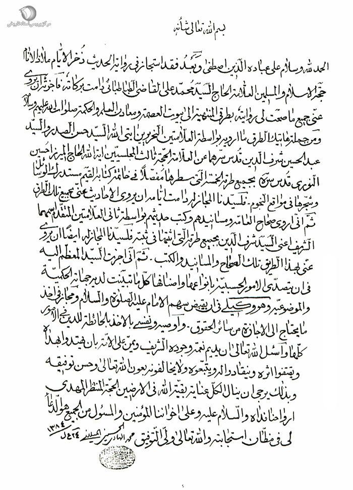 اجازههای روایت و تصدی امور شرعی از سوی آیات عظام به شهید آیتالله سید محمدعلی قاضی طباطبائی