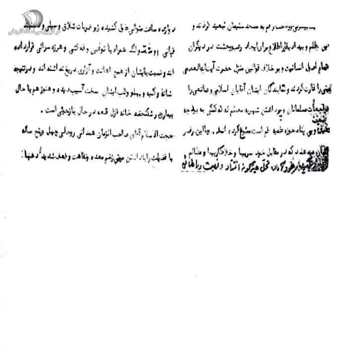 حجتالاسلام آقای صاحبالزمان همدانی رواحانی چهل و پنج ساله با فضیلت را با داشتن مرض زخم معده و نقاهت و ضعف شدید دهها.... [اصل سند ناقص است] نیستند و حتی به هیچ وجه به مخالفین خود اجازه زندگی عادی و اجرای برنامههای شخصی و غیر سیاسی هم نمیدهند. وصفی که حتی در حکومت نازیسم و فاشیسم هم نظیر ندارد.