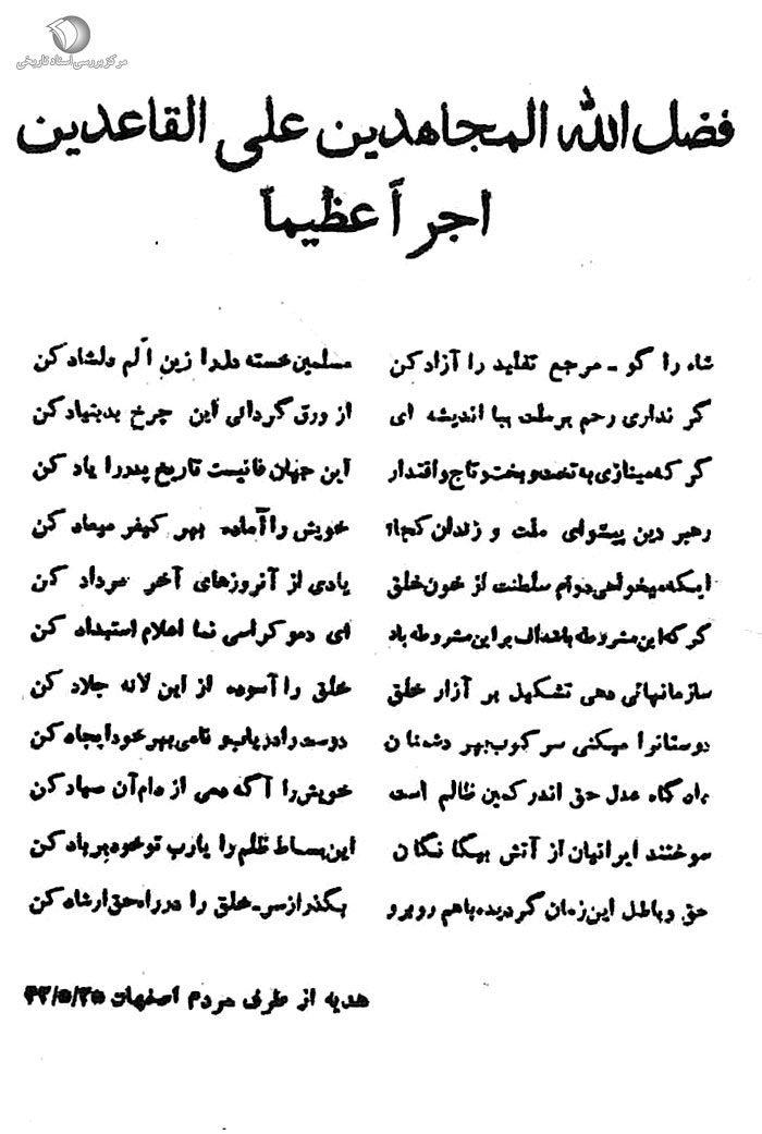 هدیه از طرف مردم اصفهان 25 / 5 / 42