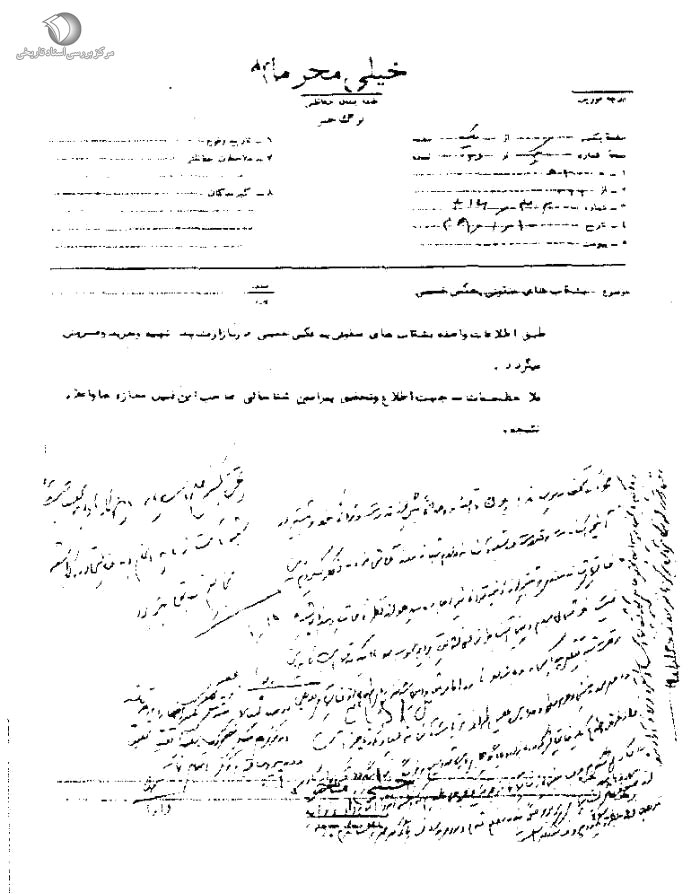 محترماً به استحضار میرساند: چون واقعاً و وجداناً بیش از قدرت و توانایی خود و بیشتر از آنچه امکانات و قدرت در شعبه آستانه دارم شبانه روز تلاش نموده و فکر میکردم این فعالیتهای شبانه روزی و بیشتر از آنچه تواناییم اجازه میدهد از نظر آن ستاد معظم پوشیده نیست، خوشحال بودم و همین استنباط نوعی تشویق برایم محسوب بود. با اینکه مدتهاست مأمورین موقت شعبه تقلیل پیدا کرده و با سه نفر مأمور اداره میشود و این سه نفر برای اطلاع از فعالیتهای مذهبی داخلی مسجد و... و حرم مطهر و مدارس علمیه اطراف بیوتات آستانه بسیار کم و ناچیز است و از طرفی اطلاع از کلیه فعالیتهایی که در بازار و یا دیگر جای این شهر وسیع و بزرگ ایجاد میگردد حتی برای کادر ساواک هم مشکل است. چه بسا بعضی از فعالیتها را متوجه نشویم. به خود میبالیدم که وظیفهام را انجام داده کما اینکه از تهیه و فروش بشقابهای مزبور قبلاً بنده مطلع شدم و روی پروندههایی به عرض رساندم ولی توجهی نشده به طوری که در پرونده منعکس است و با اینکه به استحضار رسید این شخص عامل تهیه بشقابهاست ولی مقرر فرمودند آزاد شود و حتماً دستور انعکاس آن به مرکز را نفرمودند. 16 / 1 / 49