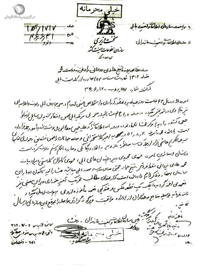 از: سازمان اطلاعات و امنیت مازندران تاریخ: 31 / 6 / 36 [1356]