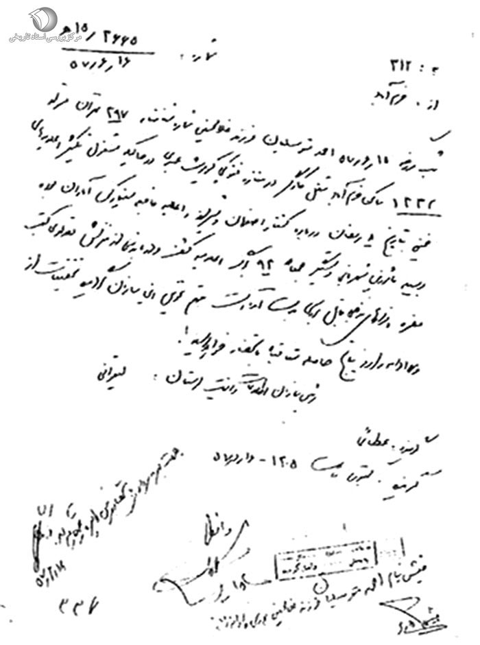 «وزارت کشور شماره : 318-28-57، شهربانی کشور شاهنشاهی تاریخ : 16 / 06 / 57