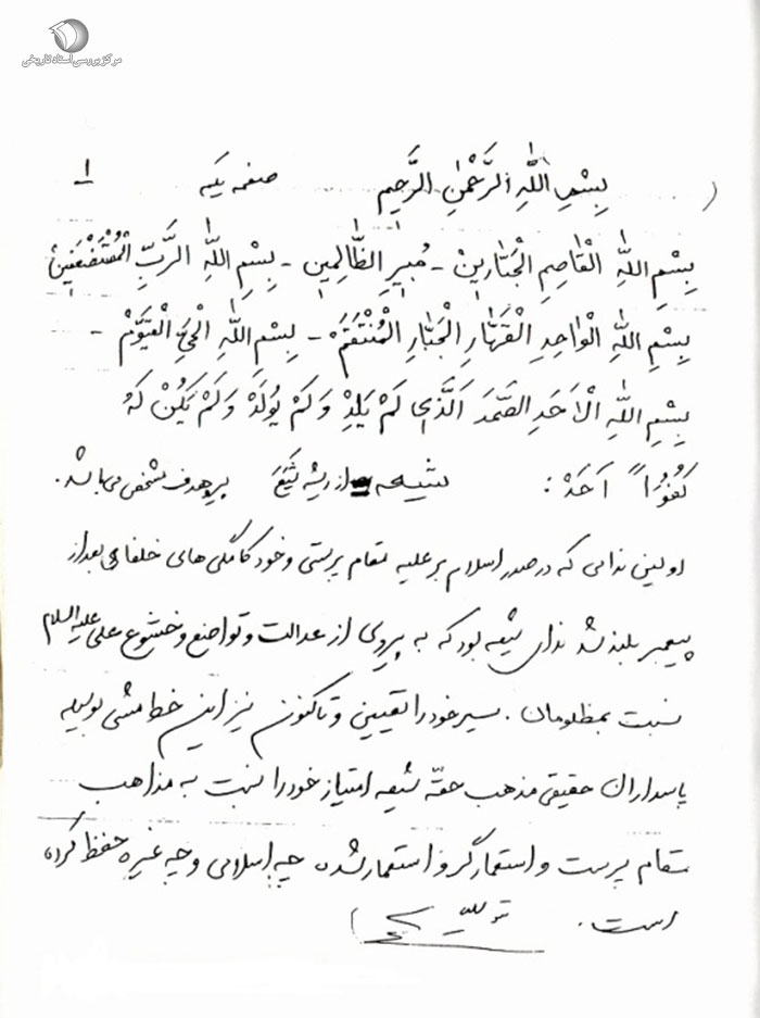 صفحۀ نخست متن دست نویس دفاعیات احمد متوسلیان در دادگاه رژیم پهلوی