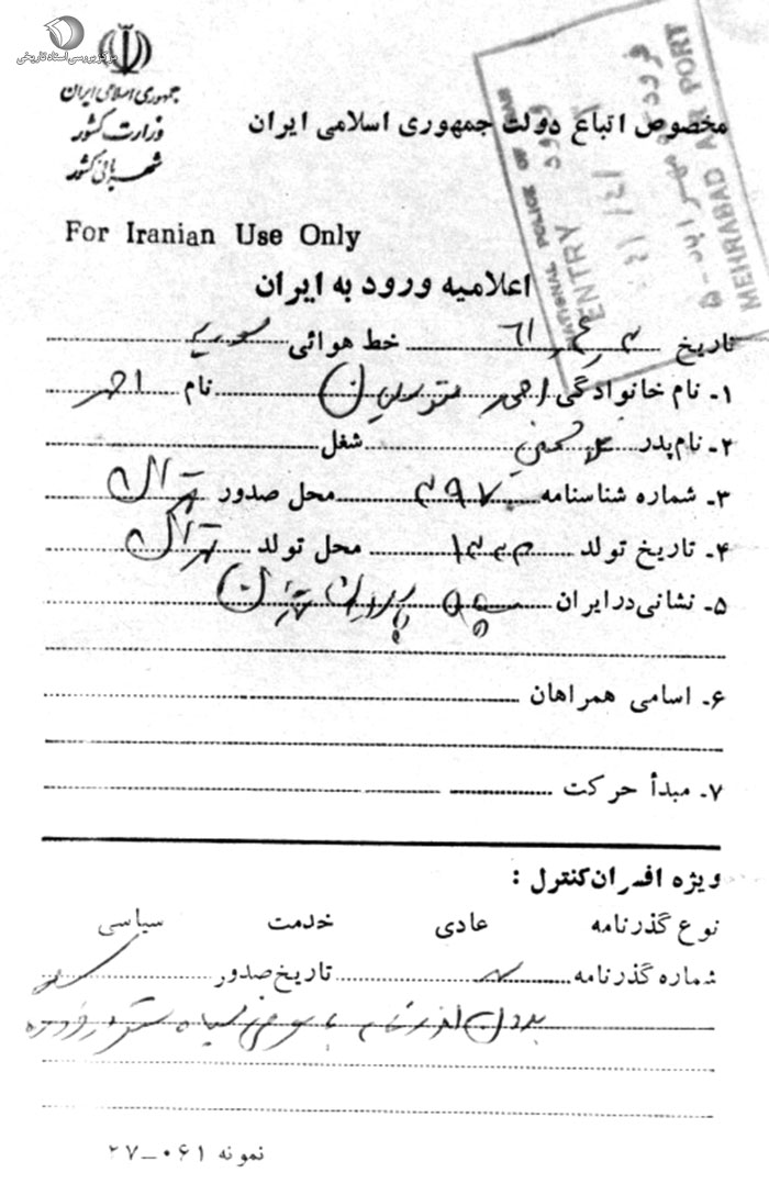 جواب: به علت صحبتهایی که در جمع خانواده راجع به مردی و مردانگی در خرمآباد میشد تصمیم به سفر به خرمآباد گرفتم و آمدم تا دو عدد اعلامیه را که در تهران به مغازه پدرم انداخته بودند پخش کنم.