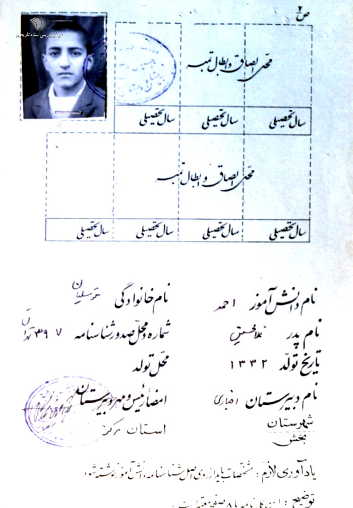 در پایان این جلسه بازجویی، خبر رسید که مأمورین اعزامی به محل سکونت احمد در آنجا مقادیر قابل توجهی اسناد و مدارک مضره یافتند. بنابر این سرهنگ احمدی با تنظیم نامهای خطاب به رئیس ساواک لرستان متهم را روانه ساواک کرد. در پرونده کلاسه ۶۴۴۳ دایره اطلاعات شهربانی خرمشهر سندی با مهر خیلی محرمانه به شرح ذیل موجود است: