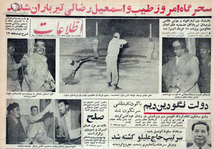 [35] «تیرباران طیب و حاج اسماعیل»، روزنامه کیهان، شماره 6085، شنبه 11 آبان 1342، ص 1 و 12-10.