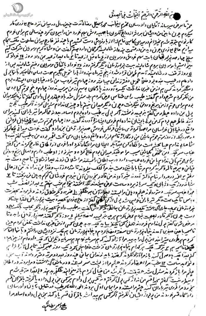 [26] همانجا. دو برگ سند مربوطه در پایان مقاله درج شده است. توجه خوانندگان محترم در مطالعه دو برگ ذکر شده و اسنادی از این قبیل را به مطلب زیر جلب میکنیم: