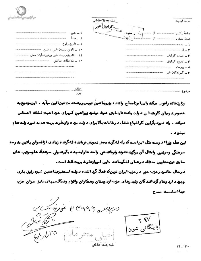در پرونده 33999 غلامرضا نیکپی بایگانی شود. 25 / 1 / 48