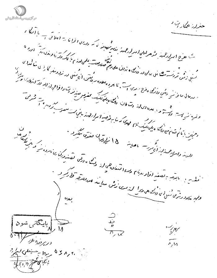 در پرونده کلاسه 115091 مربوط به حسینعلی امیرارجمند بایگانی شود. 20 /8 /57