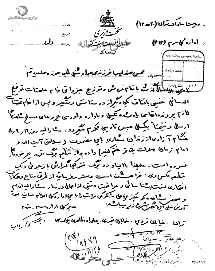 شاه، نامهای دیگری با همین متن و در همان تاریخ به آیتالله سید احمد خوانساری ارسال نمود.
