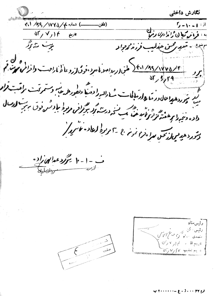 دستور ساواک برای کنترل فعالیتهای مرحوم عندلیب