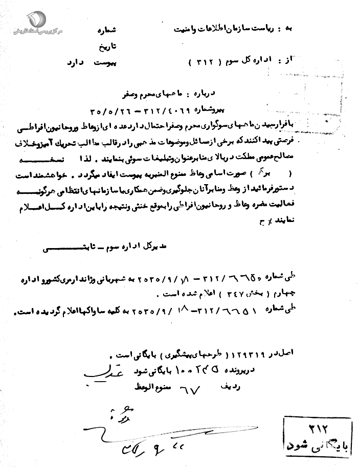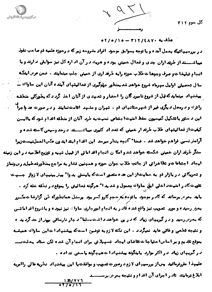 مکاتبه ساواک در مورد تارومار نمودن طرفداران امام خمینی، ص 1