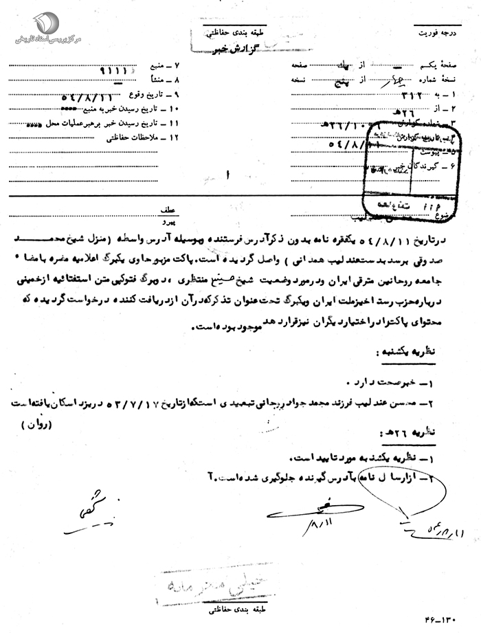 [15] . آیتالله العظمی علیاکبر فیض مشکینی به روایت اسناد ساواک، تهران، مرکز بررسی اسناد تاریخی، ص 228.