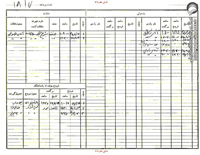 «آقایانی که به ملاقات محبوسین پلیتیکی[سیاسی] میآیند، حق ندارند غیر از صحبتهای عادی نمایند، صحبتهای سیاسی و ذکر اخبار خارج به کلی قدغن و در صورت مخالفت، مرتکب تنبیه میشوند.»