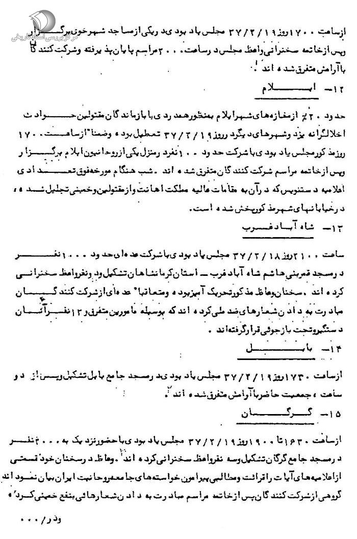 ٢٥. مرکز بررسی اسناد تاریخی (۱۳۸۵)، انقلاب اسلامی به روایت اسناد ساواک، ناشر: مرکز بررسی اسناد تاریخی، تهران، ج ۲۰، ج ۲۱، ج ۲۲.