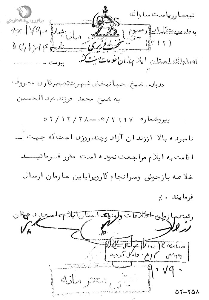 مرکز بررسی اسناد تاریخی تا کنون تعداد قابل توجهی از اسناد ساواک را منتشر کرده است. مجموعه یاران امام به روایت اسناد ساواک بر اساس پرونده فعالان انقلابی که در بایگانیهای سازمان اطلاعات و امنیت کشور به جای مانده منتشر شده است. تنظیم این اسناد برای انتشار عمومی معمولاً بر پایه یک روند زمانی سالشمارانه (کرونولوژیک) بوده است. جلد ٤٣ این مجموعه به روایت مبارزات حجتالاسلام حاج شیخ محمد (جهانبخش) تعمیرکاری (زندگی ١٣٧٩ - ١٣١٤خ) اختصاص دارد. این اسناد در محدوده زمانی سال ١٣٤٦ تا ١٣٥٧ شمسی تولید شدهاند اما بنا بر برخی مقتضیات به موضوعات مرتبط با فعالیتهای شیخ محمد در سالهای پیش از آن نیز پرداختهاند؛ مانند اسناد مربوط به پنج بازجویی شیخ در کمیته مشترک ضد خرابکاری در سال ١٣٥٤ که با نظارت میراحمد معصومی کوچصفهانی معروف به مؤید (۱۳۵۷-۱۳۰۳ خ/ ١٩٧٩-١٩٢٤م)، بازجوی متخصص ساواک انجام شده است. جلد ٤٥ این مجموعه اسناد فعالیت2های آیتالله شیخ عبدالرحمن حیدری ایلامی (زندگی: ١٣٠٤-١٣٦٥ / ۱۹۸۷ - ۱۹۲۵م. ناشر /مؤلف درباره سال تولد تشکیک کرده و آن را در حوالی ۱۲۹۵خ، ۱۹۱٦م نوشته) است. این اسناد در محدوده زمانی ۱۳۵۵ تا ۱۳۵۷ تولید شدهاند. محدوده زمانی کوتاه این اسناد با سکونت شیخ عبدالرحمن در عراق و بازگشت وی به ایران در سال ۱۳۵۵ مرتبط است. ناشر / مؤلف، افزون بر اسناد ساواک، متن برخی نامهها و تصاویر اسناد دیگر را آورده است. این اسناد عموماً دست نویسهایی از شیخ عبدالرحمن و برخی مکاتبات آیات عظام با وی است. اغلب این اسناد دست نویس هستند؛ احتمالاً چون در شمار اسناد ساواک نبودهاند، مرکز بررسی شیوه مرسوم خود درباره آنها را رعایت نکرده است این دو مجموعه (کتابهای ٤٣ و ٤٥ از مجموعه یاران امام) دارای برخی اسناد مشترک هستند که میتوان دلیل آن را به شیوه کار ساواک مرتبط دانست؛ برخی اسناد مانند گزارش خبرها دارای چند نسخه بودند و هر نسخه به چند پرونده یا دایره راه مییافت. تا کنون اسناد شیخ محمدتقی مروارید (زندگی: ۱۳۹۱ ۱۳۰۰ خ/ ۲۰۱۲ - ۱۹۲۱م) در ساواک منتشر نشده است؛ احتمالاً انتشار این اسناد میتواند مواد خام و مصالح بیشتری برای تدوین تاریخ ایلام به اهل تحقیق ارائه کند.