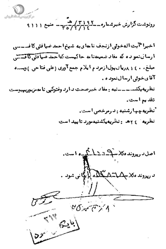 ۱۳. مرکز بررسی اسناد تاریخی (۱۳۸۸)، آیتالله العظمی سید شهابالدین مرعشی نجفی به روایت اسناد ساواک، تهران، ناشر: مرکز بررسی اسناد تاریخی، ج ۳.