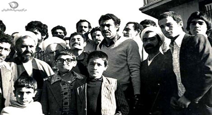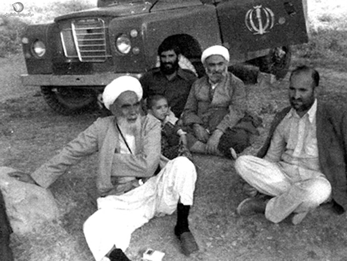 از راست: بنیان شیرخانی، علیاکرم صفیپور، حجتالاسلام محمد تعمیرکاری، آیتالله حیدری ایلامی، ایلام 1360