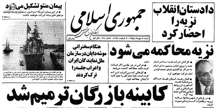 کابینه دولت موقت مهندس مهدی بازرگان. حسن نزیه نفر اول ایستاده از سمت چپ