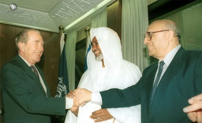 «یعقوب نیمرودی» و «حییم هرتزوگ» (چپ) رئیسجمهور اسبق اسرائیل و «شیخ اسحاق ادریس سخوطه» (وسط) از رجال دینی