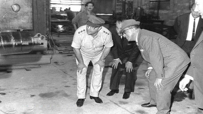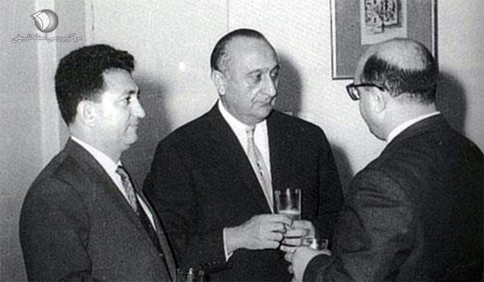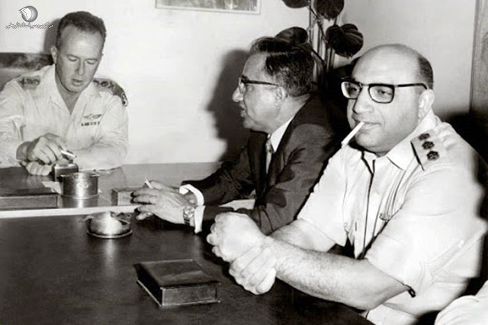 دیدار نصیری رئیس ساواک (نفر وسط) با مئیر عزری نماینده رسمی اسرائیل در تهران (سمت چپ) و یعقوب نیمرودی رابط موساد با ساواک