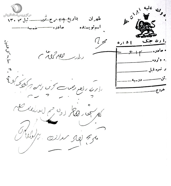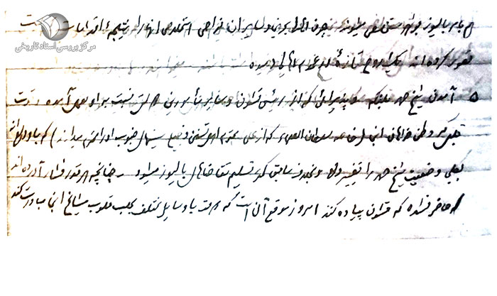 پس از ابلاغ سلام و عرض بندگی با کمال ادب زحمت عرض میدهد. قبل از این به تاریخ 15 ماه قمری گذشته مطالب به عرض مقدس عالی رساندهام، لازم شد در تعقیب آن عریضه مطالب را ادامه دهم.