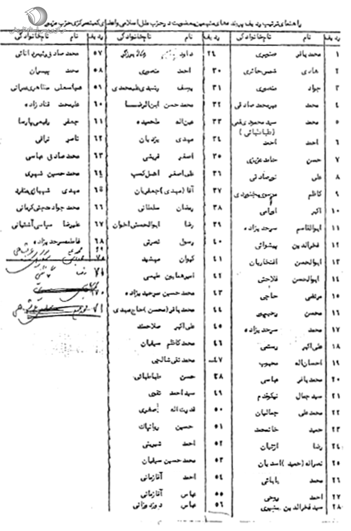 [22] . اسناد شماره 12و 13 از مجموعه حاضر. توجه شود که اسامی اعضای متهم 71 نفر و محاکمه شدگان 69 نفر هستند. علت آن بود که خانم فاطمه سرحدی زاده به دلیل عدم احراز اتهام همان ابتدا منع تعقیب گرفت و محمدعلی مولوی عربشاهی فرار نمود و هیچگاه به دام ساواک نیفتاد.
