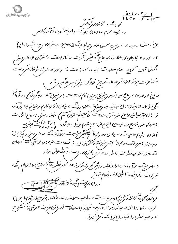 [9]. همان، سند تاریخ: 12 /6 /2537[1357]، شماره: 2904 /2 ﻫ 1.