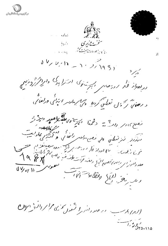 [21]. همان، سند تاریخ: 25 /7 /1357، شماره: 1950/گ10.