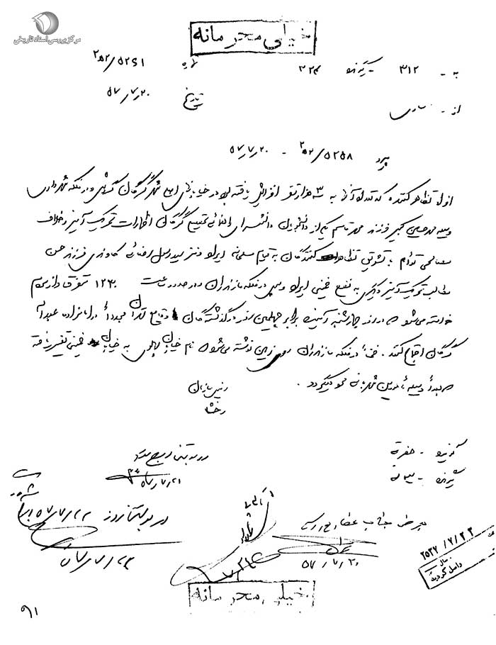 [61]. همان، سند تاریخ: 11 /10 /1357، شماره: 5231 /2 ﻫ 1.