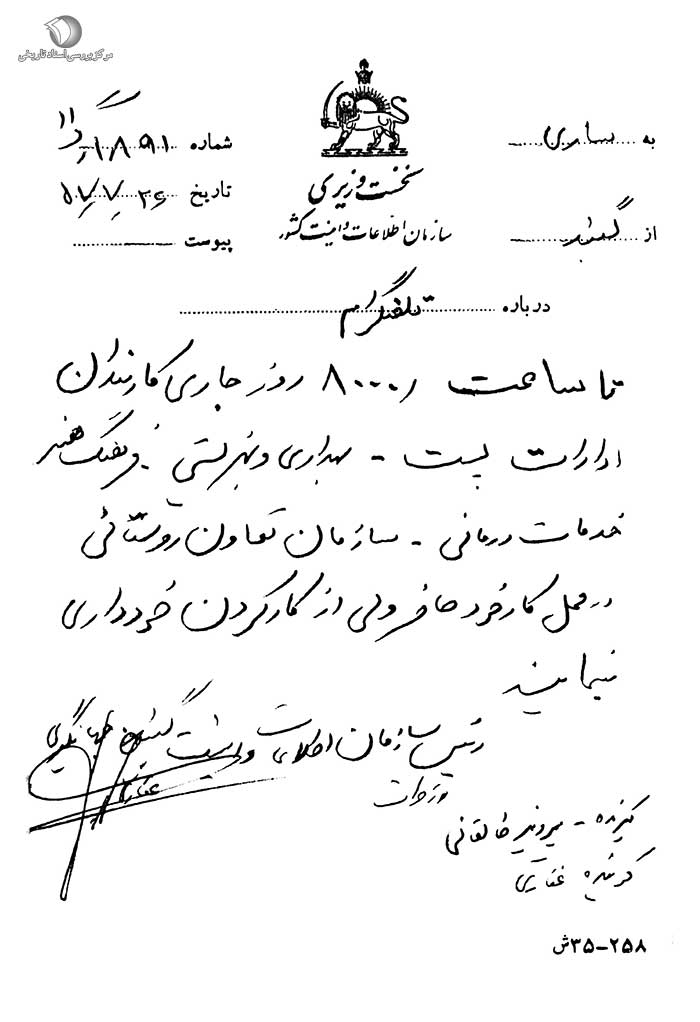 [20]. همان، سند تاریخ: 24 /7 /1357، شماره: 2020/گ10.
