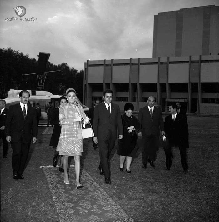 علینقی عالیخانی، فرح پهلوی و سید حسین نصر در دانشگاه تهران.