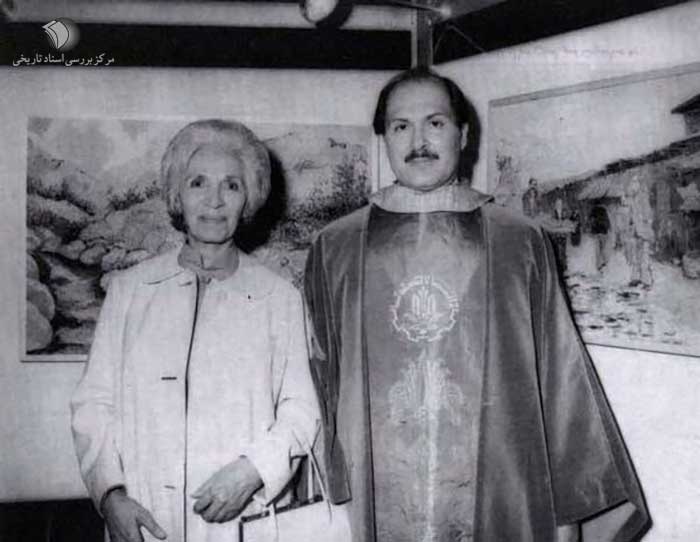 سید حسین نصر در لباس ریاست دانشگاه آریامهر و مادرش ضیاءاشرف کیا در سال 1353.