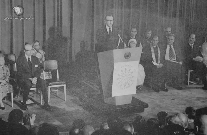 سیامین سال تأسیس سازمان ملل با حضور کورت والدهایم دبیرکل و نمایندگان ادیان و فرهنگهای مختلف از جمله مادر ترزا در نیویورک سال 1354.
