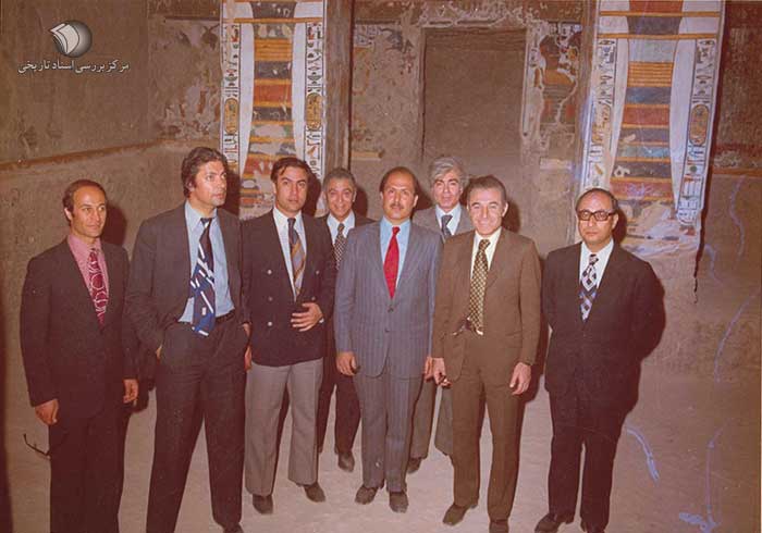 از راست فرح پهلوی، سیدحسین نصر، علیرضا هروی راد، کریم پاشا بهادری و رضا قطبی در سفر به مصر.