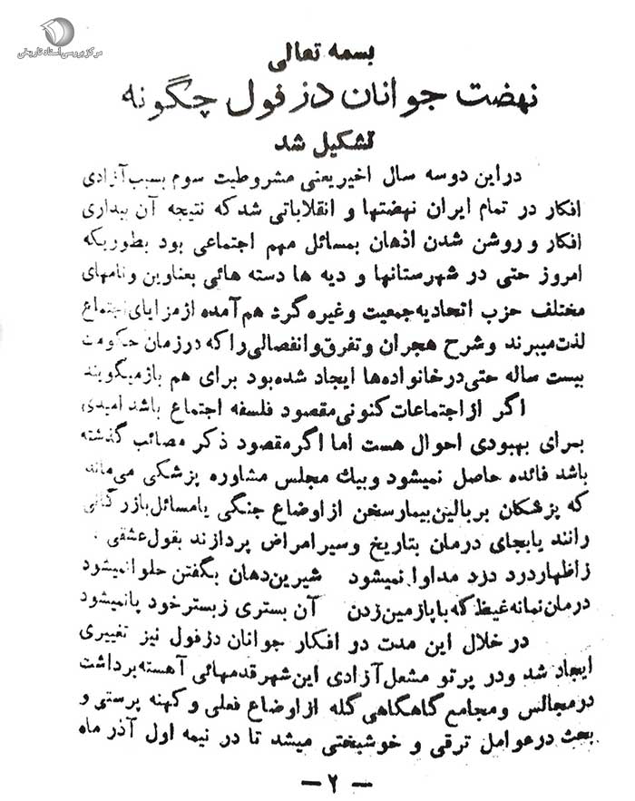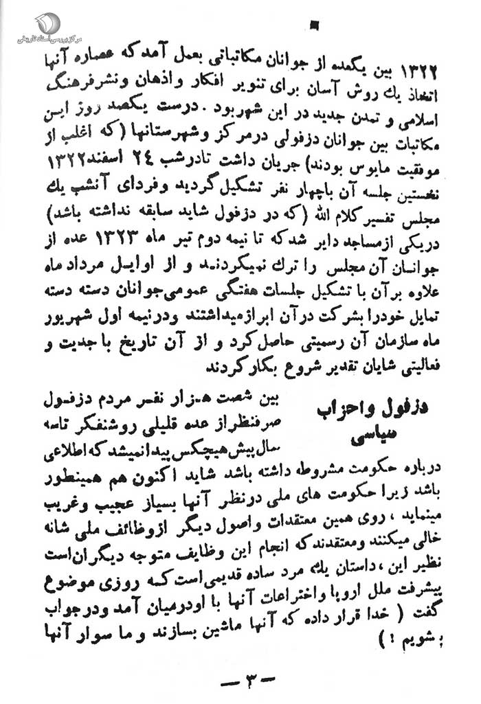 ادامه چگونگی تشکيل نهضت جوانان دزفول.