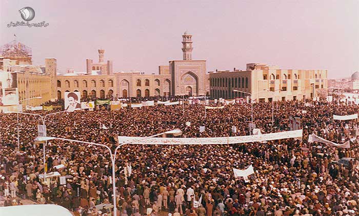 «محمدآقا پیش من آمد و گفت همه چیز بر وفق مراد است... رفتم به سوی حرم. دیدم پر است از زائران منتظر خطبه. به طرف اتاقی که مشرف به صحن بود رفتم. از آنجا مردم را میدیدم ولی آنان نمیتوانستند مرا ببینند. محمد، پسرم مصطفی و عدهای دیگر همراهم بودند.»