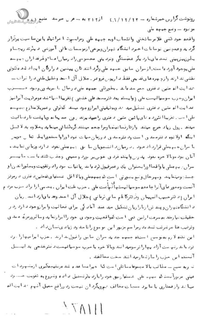 بازتاب حزب مردم ایران در گزارش ساواک از وضع جبهه ملی. ص 1