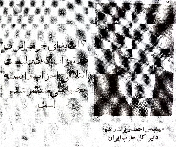 [27] حزب ایران، حزبی ملیگرا و از احزاب عمده جبهه ملی بود که سیاستمداران برجستهای نظیر اللهیار صالح، کریم سنجابی، احمد زیرکزاده، کاظم حسیبی و شاپور بختیار در کنار برخی دیگر از تحصیلکردگان دانشگاههای اروپا و آمریکا در این حزب فعال بودند. برای مطالعه بیشتر رجوع کنید به: «نگاهی به تأسیس و اقدامات حزب ایران»، سایت مرکز بررسی اسناد تاریخی.