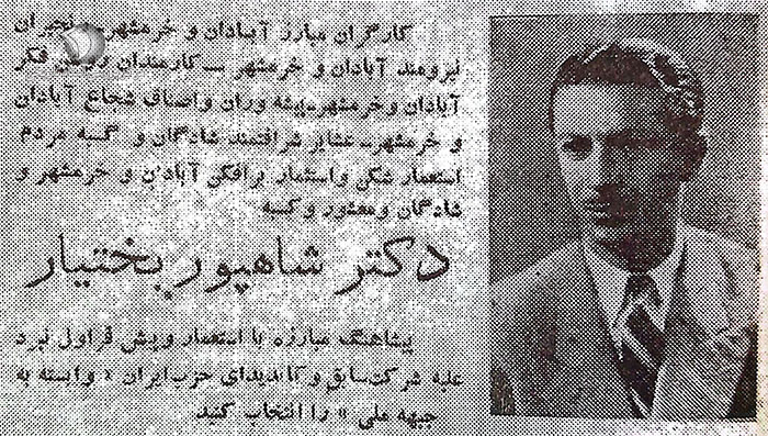 [30] بختیار، شاپور، خاطرات شاپور بختیار نخستوزیر ایران (1357)، به کوشش حبیب لاجوردی، تهران، 1386، نشر صفحه سفید، چاپ دوم، ص 77 و 78.