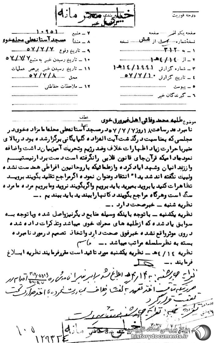 گزارش ساواک از مراسم یکی از قربانیان شهر نقده.