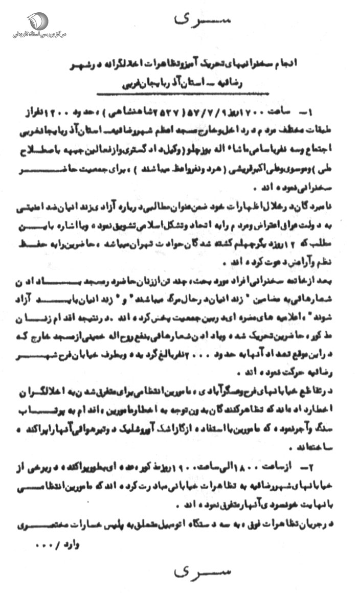 گذری بر انقلاب اسلامی در استان آذربایجان غربی به روایت اسناد ساواک- بخش هفتم