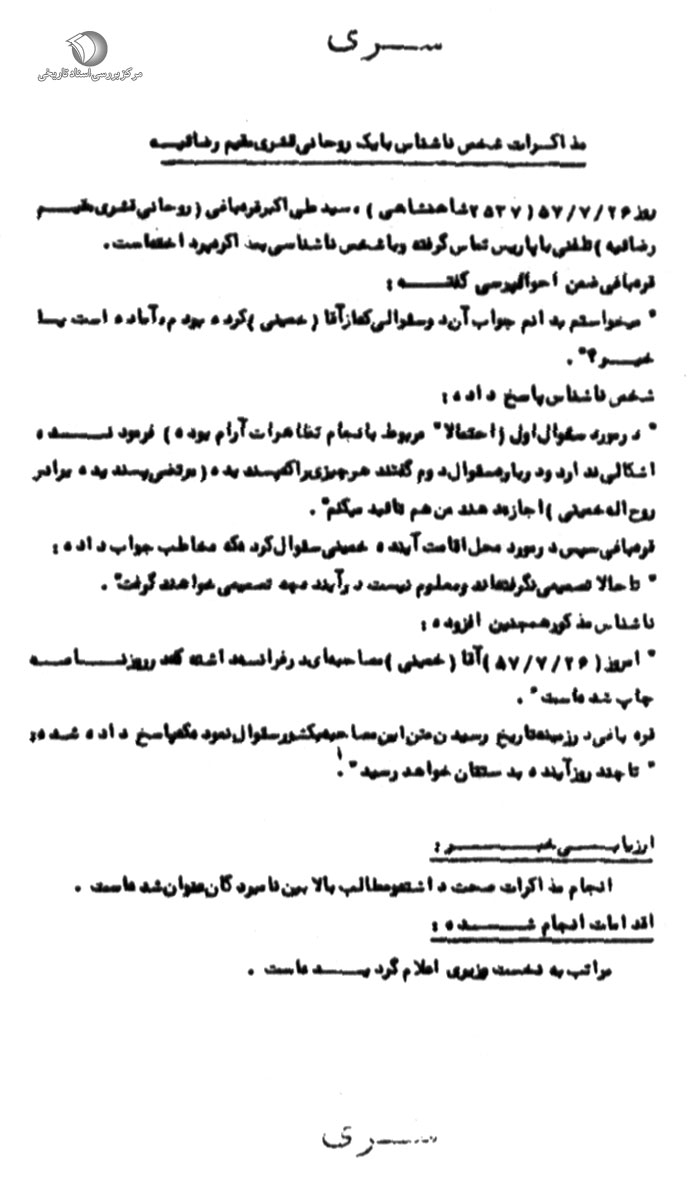 گزارش ساواک از تماس تلفنی آیتالله سید علیاکبر قرهباغی با پاریس.