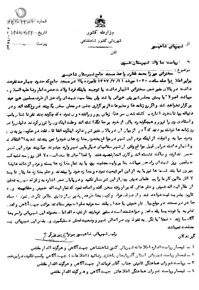 [7] . نک به: سند شماره 5، پیوست در همین مقاله.