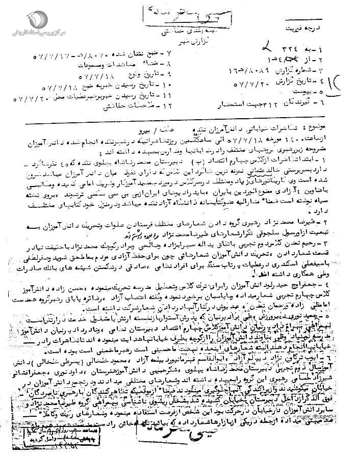 گزارش ساواک از تظاهرات دانشآموزان در شهر نقده.